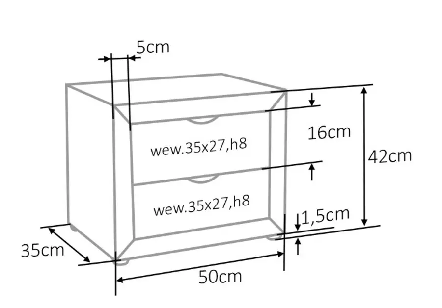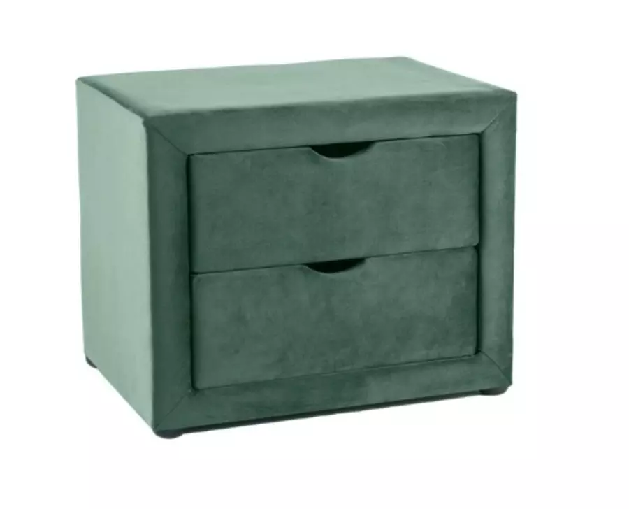 Нощно шкафче ЕТ 002 КАДИФЕ ЗЕЛЕН предлага удобна повърхност за поставяне на лампа, аксесоари или книги, а компактните му размери го правят подходящо както за по големи, така и за по малки помещения. Моделът се отличава с широчина петдесет сантиметра, височина четиридесет и два сантиметра и дълбочина тридесет и пет сантиметра, което осигурява практично пространство за подреждане без да заема излишно място.