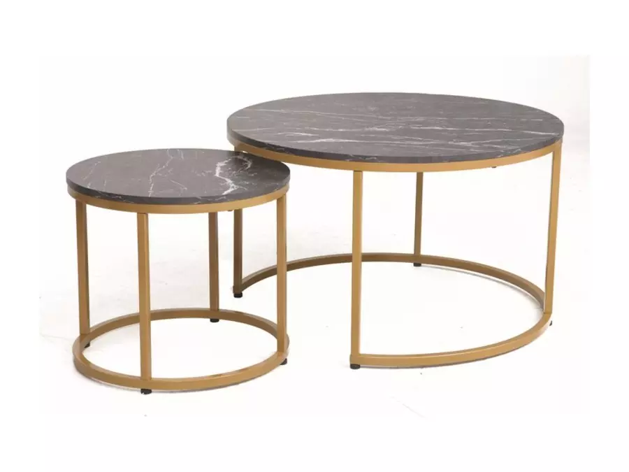 Комплектът от 2 холни маси ДИОН впечатлява със своя минималистичен и модерен дизайн, който е идеално решение за всеки стилен интериор. Масите се отличават с изчистени линии и елегантна комбинация от материали, които осигуряват функционалност и визуална привлекателност. Здравата метална основа придава стабилност и гарантира дълготрайност, съчетавайки практичност и стил в едно.
