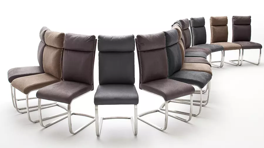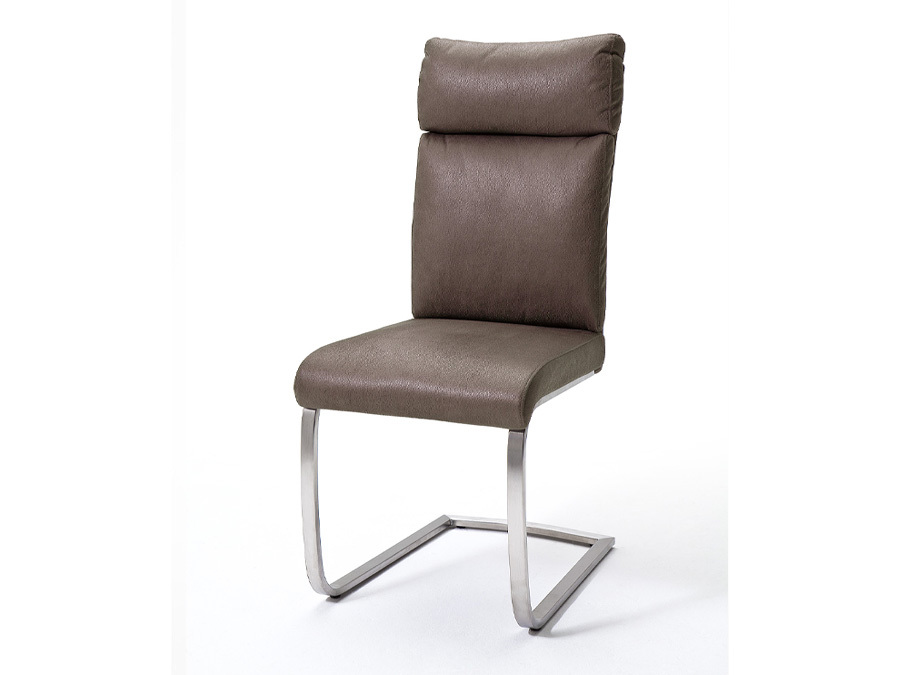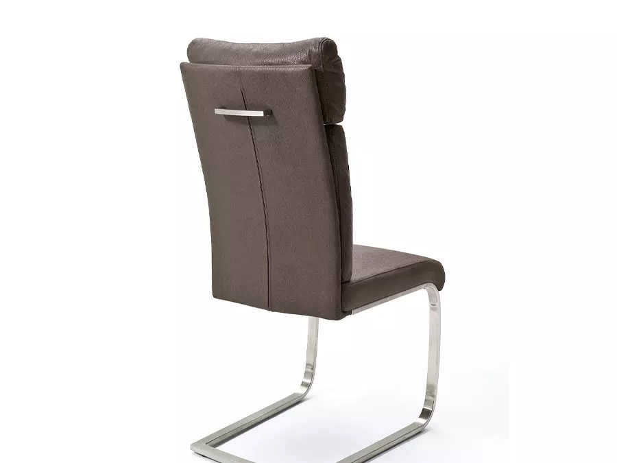 Трапезен стол РАБЕА е изработен от метална основа от неръждаема стомана, седалката е тапицарана в кафяв цвят. За допълнително удобство и по-лесно издърпване столът е обурудван с дръжка от външната страна на облегалката. Максималното натоварване на стола е 120кг