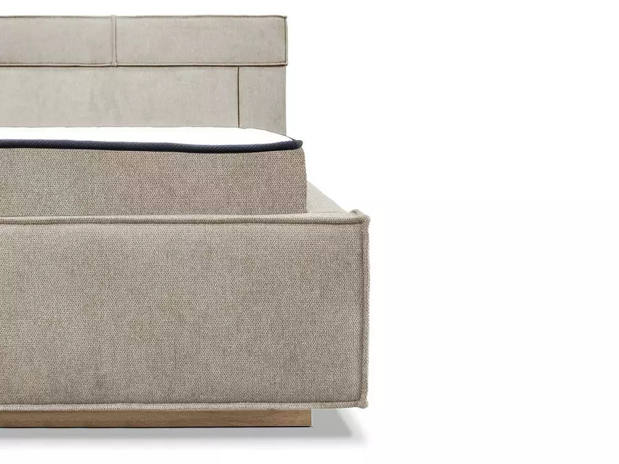 Леглото е изработено изцяло от 18мм лпдч и висок клас дамаска. Налично е в два цвята на тапицерията, а именно сив и бежов. Луб и табла са направени по-високи за допълнителен комфорт и визия. Може да пасне на всеки един интериор. Предвидена е за матрак с размер 1600 / 2000мм. Има възможност да се изпозлва, както с еднолицев, така и с двулицев матрак посредством ламелна рамка.