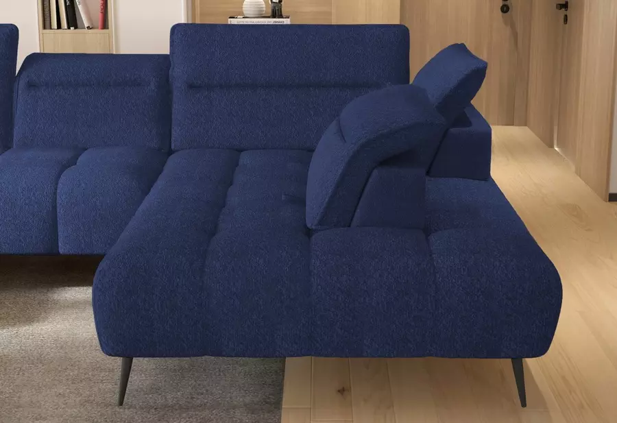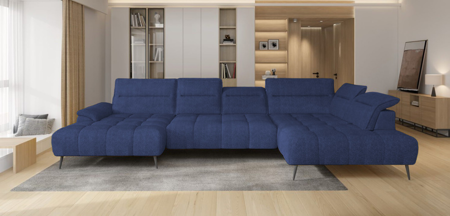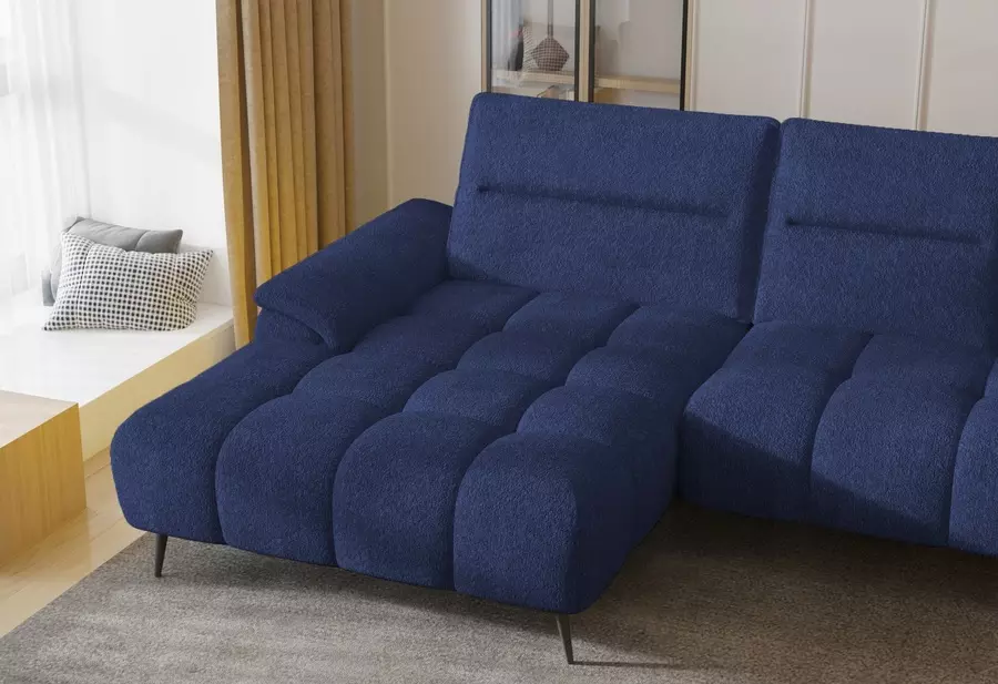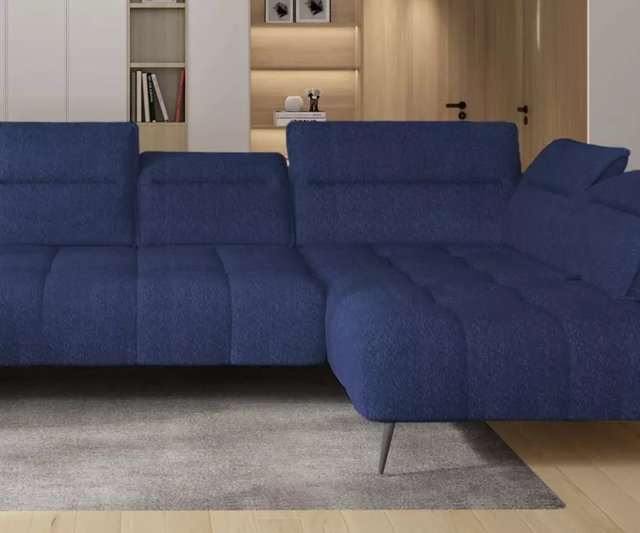 Регулируемите подглавници с 5 степени и възможността за издърпване на облегалката на седалката осигуряват допълнителен комфорт и ергономична опора при различни позиции на тялото. Моделът е повдигнат на крачета, което придава усещане за лекота и улеснява почистването на пространството под дивана.