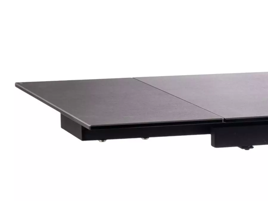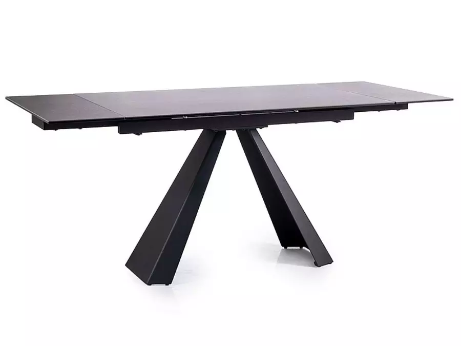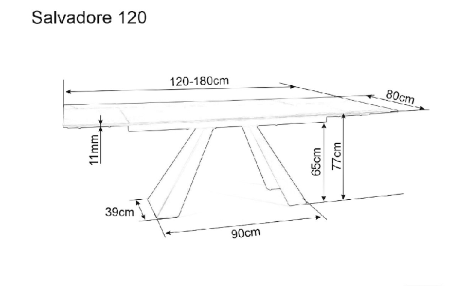 Разтегателна маса САЛВАДОРЕ е изработена от плот със закалено стъкло и отлята испанска керамика. Основата на масата е от стомана в черен матов цвят. Размерът на плота в разтегнато положение е 180 см., като може индивидуално да се разтяга от двете страни.