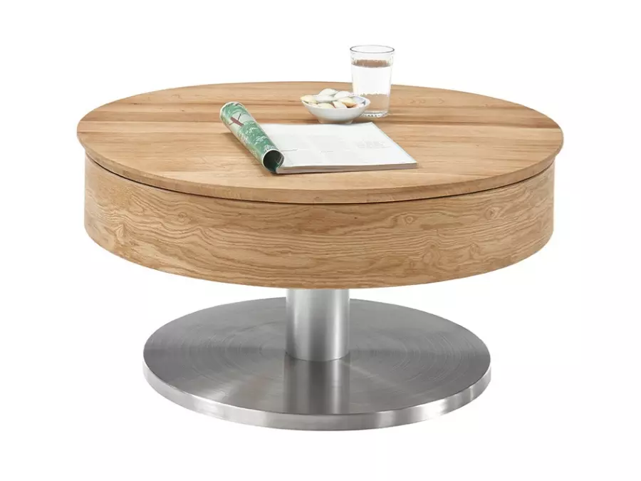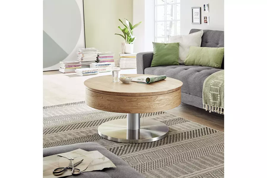 Холна маса САВА е кръгла холна маса с прибиращ се плот и вътрешен рафт. Плотът е изработен от шперплат от естествена фурнирована дъбова дървесина. Кръгла основа на масата, изработена от МДФ плоскост и покрита с метал във вид на матиран инокс. Холна маса САВА се характеризира с изключителна функционалност.