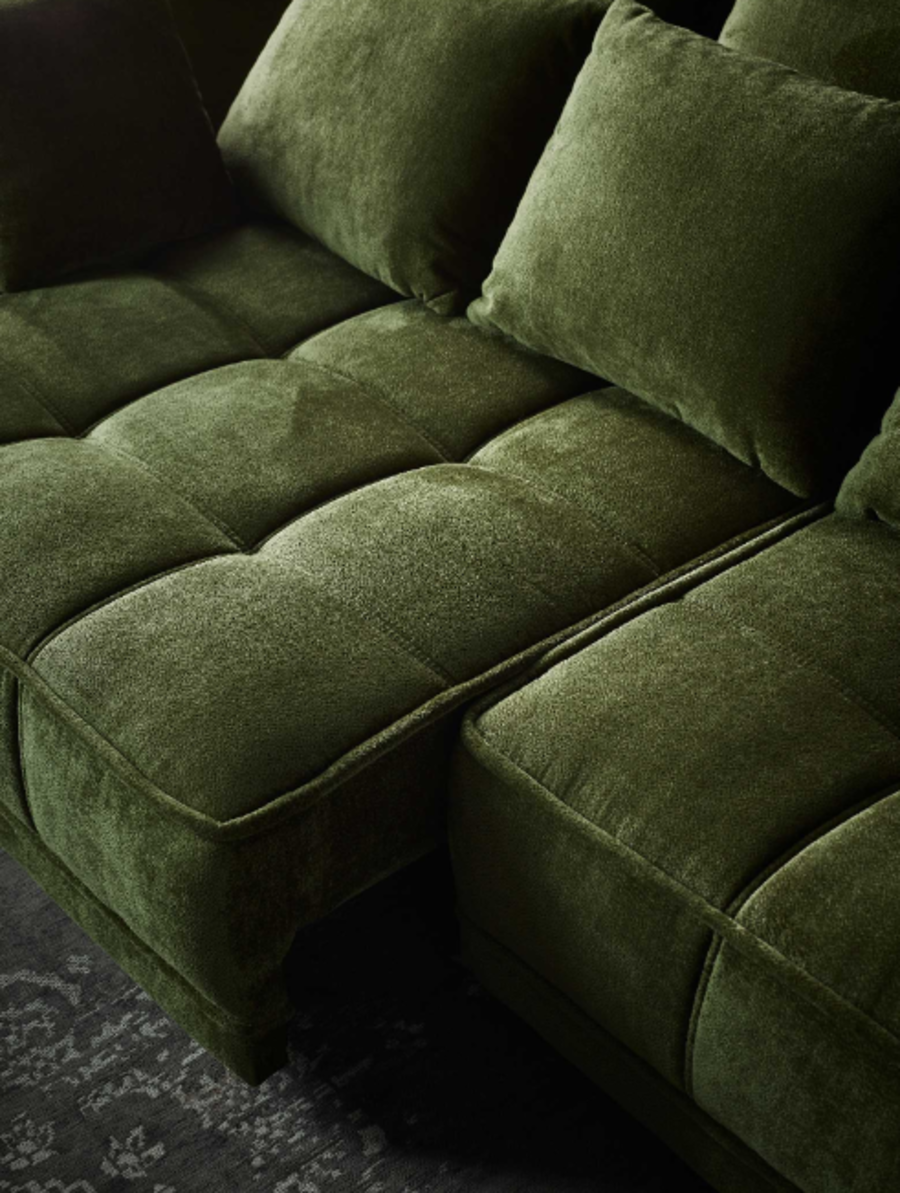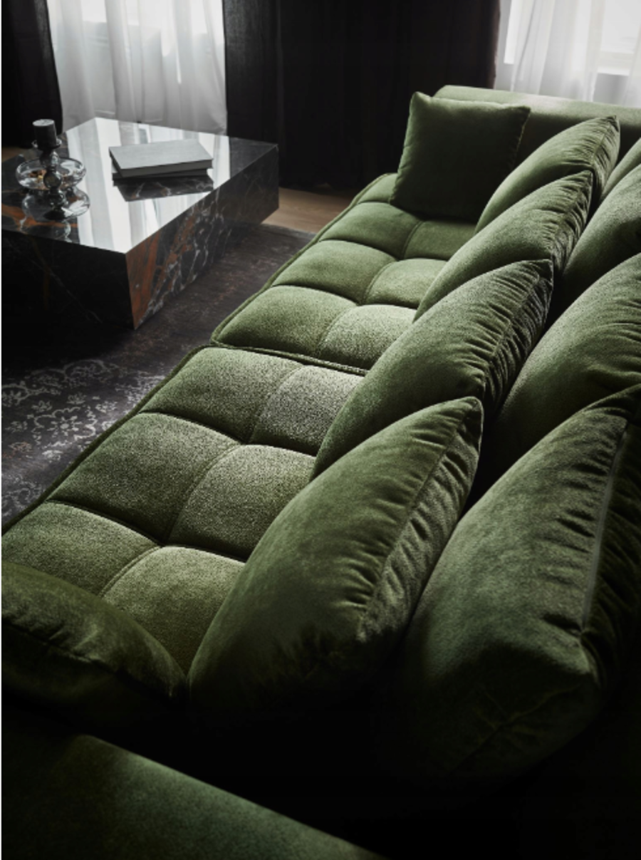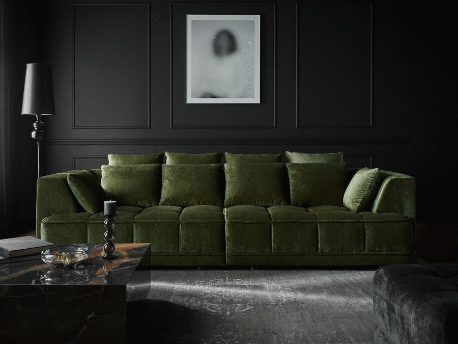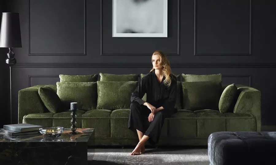 Диванът разполага с множество декоративни възглавници,които са със сваляеми калъфки с цип.