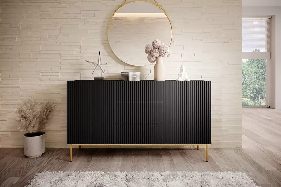 Бюфет НИКОЛ 2D3SZ съчетава елегантност и функционалност в едно изискано решение за интериора. Изработен от устойчив корпус от ламинирано ПДЧ и стилни фронтове от фрезован MDF, този модел впечатлява със своята прецизна изработка и модерна визия. Фрезованите детайли придават характерен почерк и изтънченост, които подчертават принадлежността му към внимателно подбрана колекция с усещане за класа.