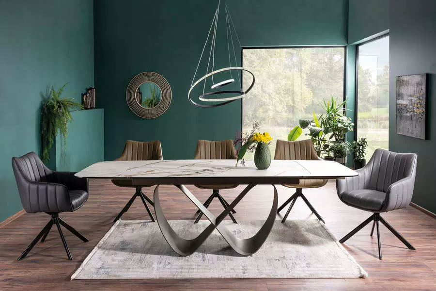 Металната основа на масата се отличава с фина и изчистена линия, която придава лекота на дизайна. Оригиналната форма на основата я прави модерна и стилна, идеално допълвайки съвременните интериорни тенденции. Тази комбинация от материали и форма създава уникален продукт, който ще бъде акцент във вашия дом. С размери 160 см в стандартно състояние и възможност за разтягане до 240 см, масата Infinity Ceramic е подходяща както за ежедневна употреба, така и за специални поводи с повече гости. Тя предлага съвършено съчетание между естетика, функционалност и качество, превръщайки се в идеалното допълнение за модерни интериори.