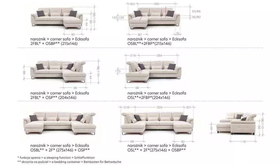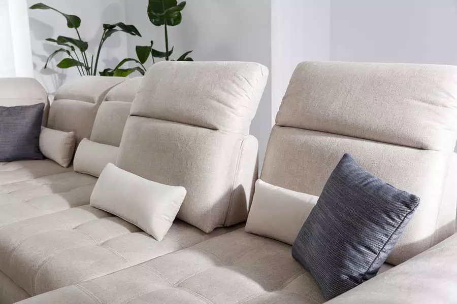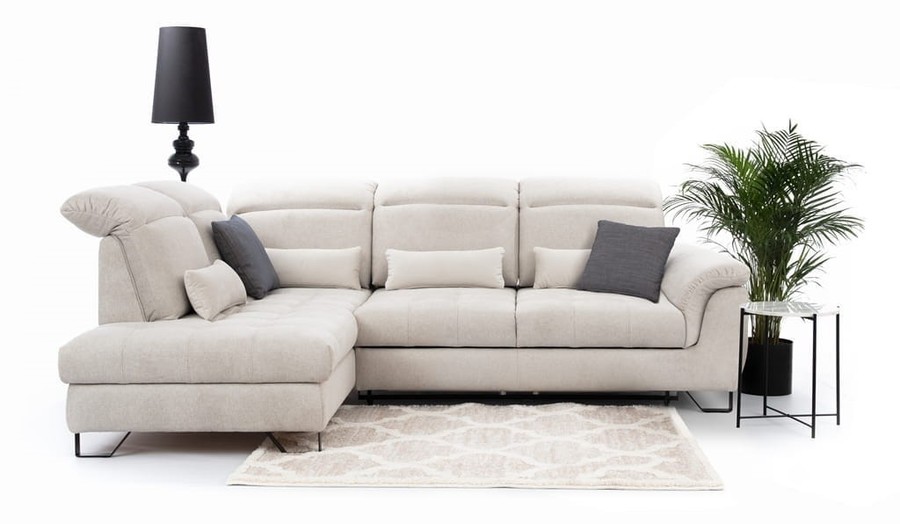 Ъглов диван ДЖОВАНИ с функция сън и ракла. Моделът разполага с облегалки за глава, с възможност за регулиране и промяна на наклона.