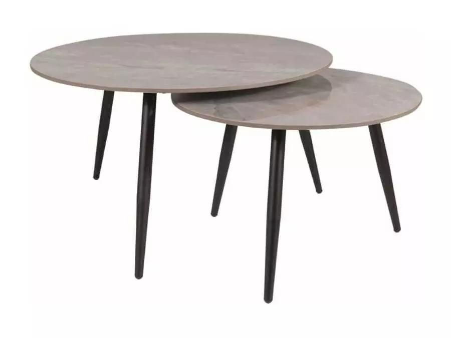 Комплект от 2броя холни маси КОРА С са изработени от керамични плотове имитиращи сив мрамор и метални крака в цвят черен мат. размерите на масите са: