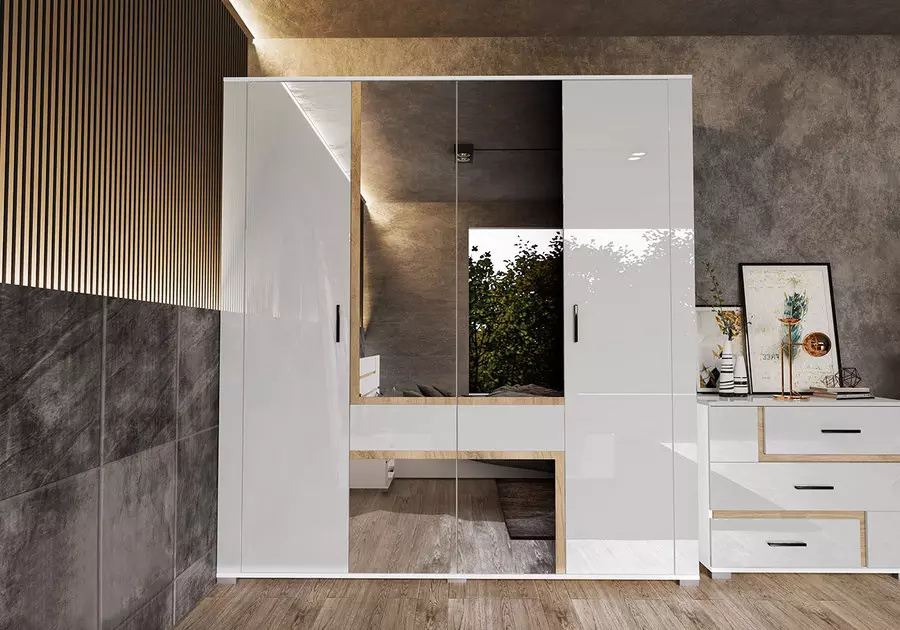 Моделът е предназначен за любителите на бялото. Добавена е деликатна нотка от дървесен декор сонома арвен. Леглото е снабдено с повдигащ механизъм, а гардеробът с 4 крила и 4 огледала. Скринът има 3 чекмеджета и е включен в цената на модела.
