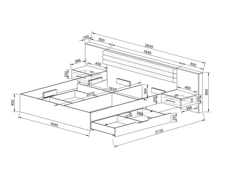 Размери : 2645 / 2125 / 900