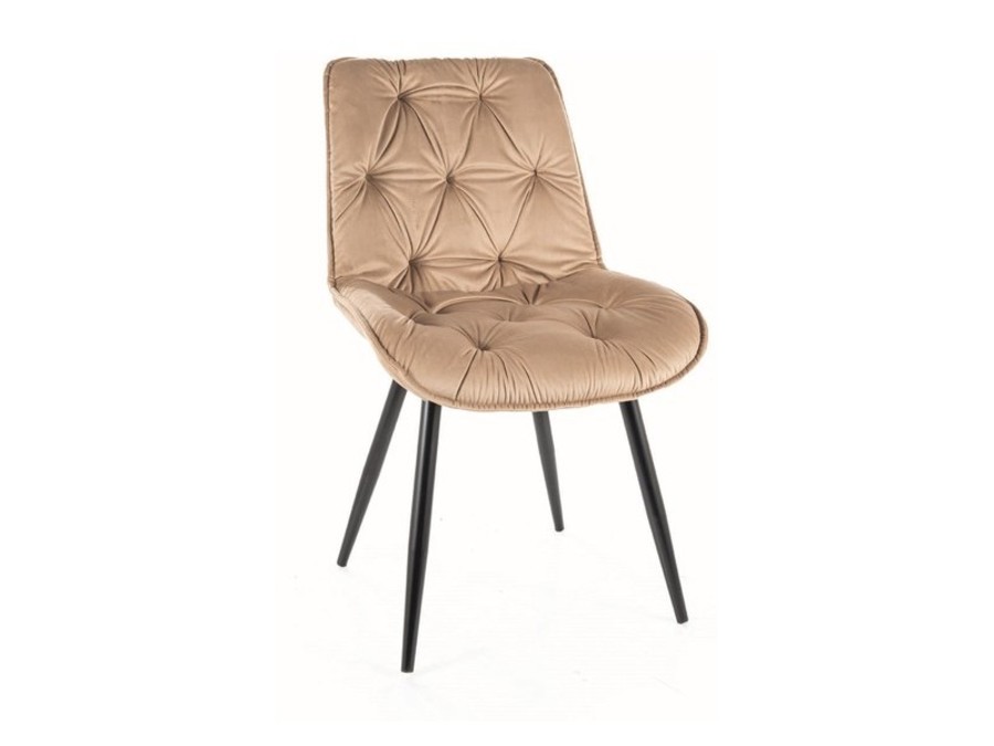 Трапезен стол ЧЕРИ II е изработен от кадифена дамаска в бежов цвят.