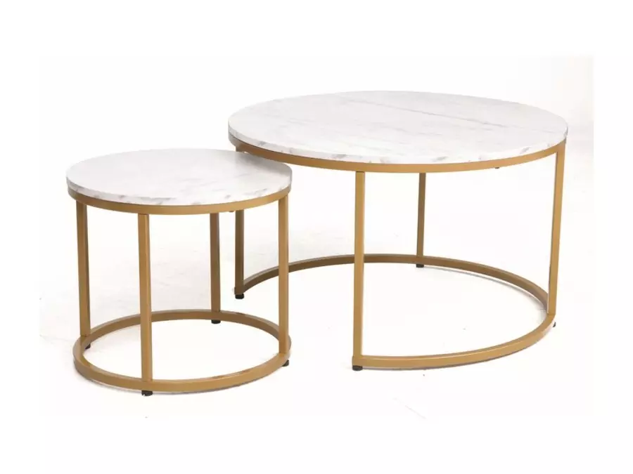 Комплектът от 2 холни маси ДИОН впечатлява със своя минималистичен и модерен дизайн, който е идеално решение за всеки стилен интериор. Масите се отличават с изчистени линии и елегантна комбинация от материали, които осигуряват функционалност и визуална привлекателност. Здравата метална основа придава стабилност и гарантира дълготрайност, съчетавайки практичност и стил в едно.
