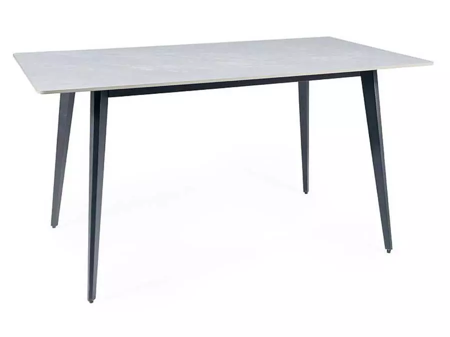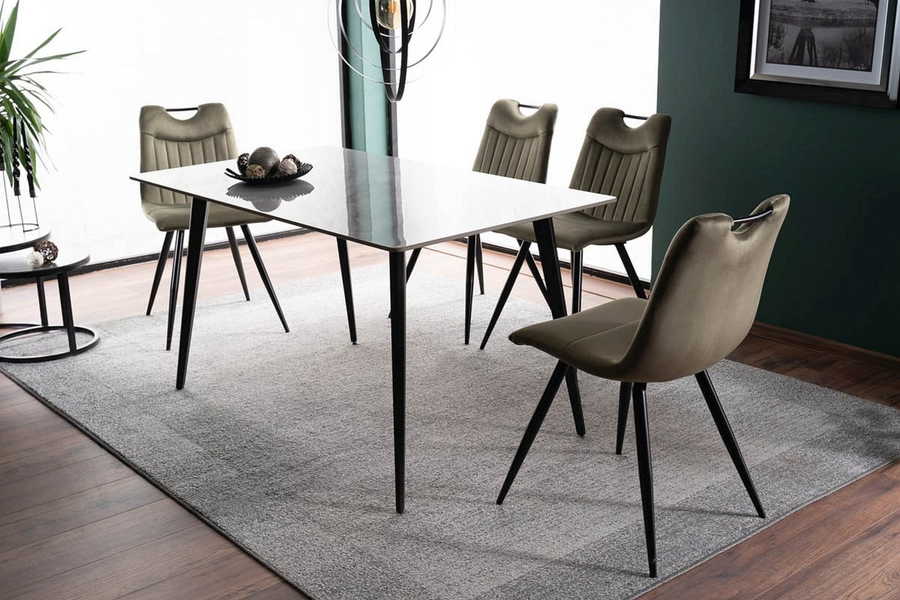 Трапезна маса ИВИ е съвременно и стилно решение за вашата трапезария или кухня, съчетаваща елегантност и функционалност. Нейният плот, изработен от висококачествена керамика, е със зашеметяващ ефект на сив мрамор, който придава луксозен и изискан вид на мебела. Плотът е устойчив на надрасквания и лесен за почистване, което го прави практичен за ежедневна употреба.