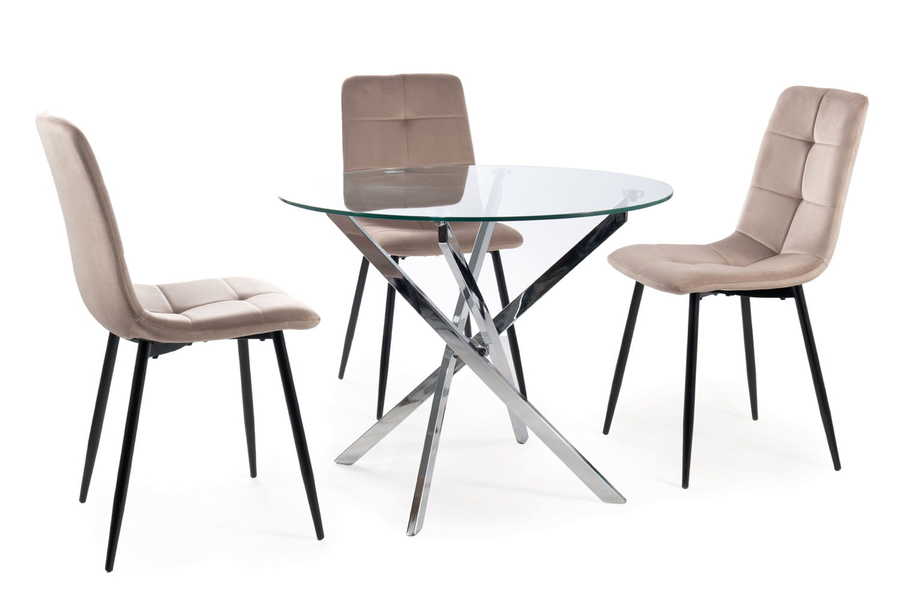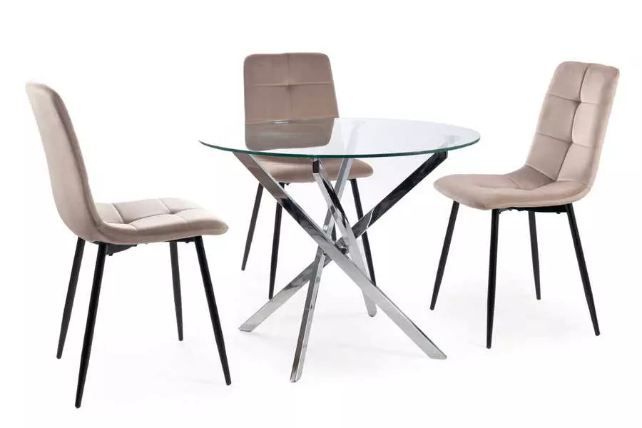 Трапезен стол ИВО впечатлява с модерен дизайн и издръжливост, като е идеален избор за дома, ресторанти и кафенета. Седалката от пяна и кадифен плат осигурява мекота и комфорт, докато черните метални крака с матово покритие гарантират стабилност и здравина. Максималното натоварване от 120 кг прави стола практичен и устойчив. Той съчетава стил и функционалност, добавяйки елегантен акцент към всяко пространство. Подходящ е както за трапезарии и кухни, така и за съвременни интериори.