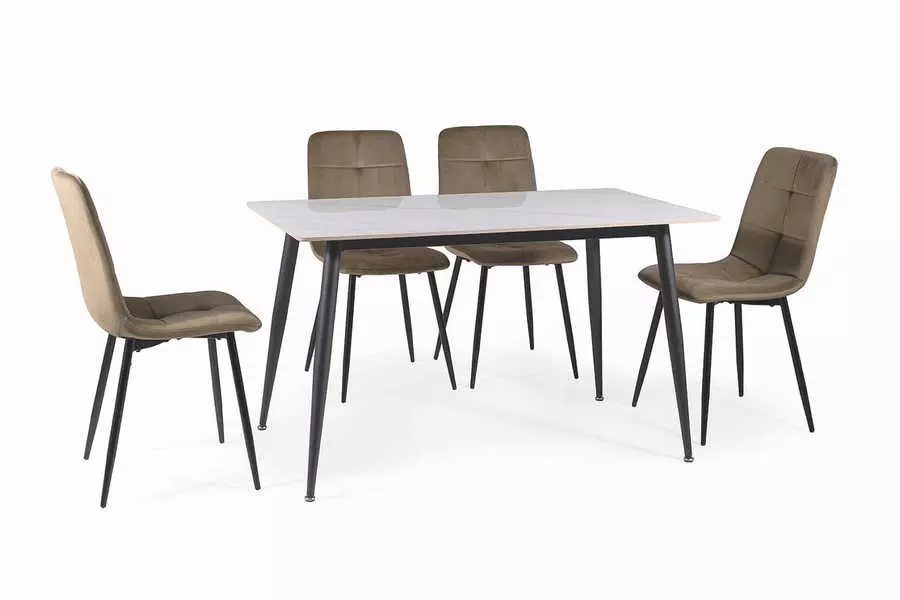 Трапезен стол ИВО впечатлява с модерен дизайн и издръжливост, като е идеален избор за дома, ресторанти и кафенета. Седалката от пяна и кадифен плат осигурява мекота и комфорт, докато черните метални крака с матово покритие гарантират стабилност и здравина. Максималното натоварване от 120 кг прави стола практичен и устойчив. Той съчетава стил и функционалност, добавяйки елегантен акцент към всяко пространство. Подходящ е както за трапезарии и кухни, така и за съвременни интериори.