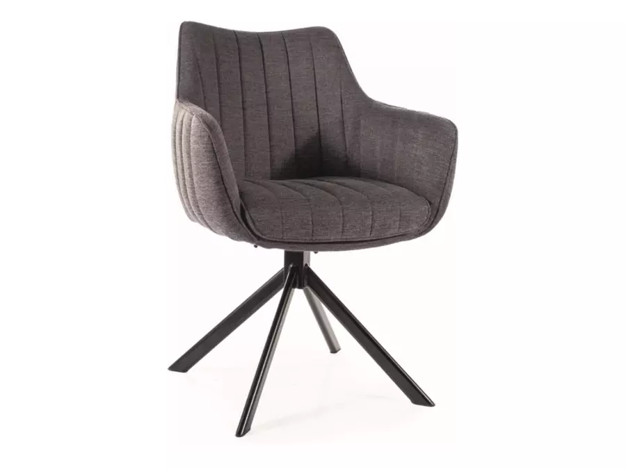 Кресло АЗАЛИЯ е стилно и практично решение за всяка модерна трапезария или всекидневна. Със своя изчистен дизайн и висококачествена изработка, то придава елегантност и функционалност на интериора. Тапицираната седалка осигурява комфорт при продължително използване, а вграденият механизъм за въртене на 180 градуса позволява удобно завъртане, като креслото автоматично се връща в изходна позиция. Здравата метална основа с черно матово покритие гарантира стабилност и дълготрайност, дори при интензивно натоварване.