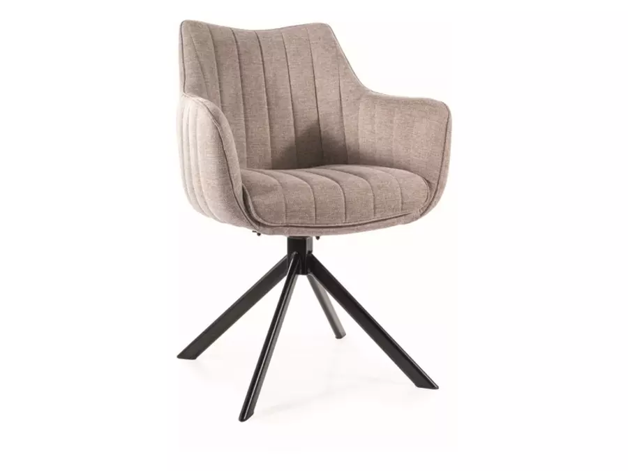 Кресло АЗАЛИЯ е стилно и практично решение за всяка модерна трапезария или всекидневна. Със своя изчистен дизайн и висококачествена изработка, то придава елегантност и функционалност на интериора. Тапицираната седалка осигурява комфорт при продължително използване, а вграденият механизъм за въртене на 180 градуса позволява удобно завъртане, като креслото автоматично се връща в изходна позиция. Здравата метална основа с черно матово покритие гарантира стабилност и дълготрайност, дори при интензивно натоварване.