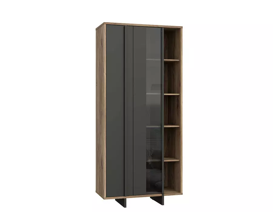 Витрината предлага удобни и функционални пространства за съхранение на различни вещи. Затворените отделения осигуряват място за организиране на по-големи предмети, а остъклените рафтове предлагат възможност за подредба на декоративни елементи или книги, които ще подчертаят елегантността на вашия интериор. Част от колекция "ДЖОКАЗ", този елемент е създаден с внимание към детайлите, което го прави перфектното допълнение към всяка съвременна всекидневна или трапезария.