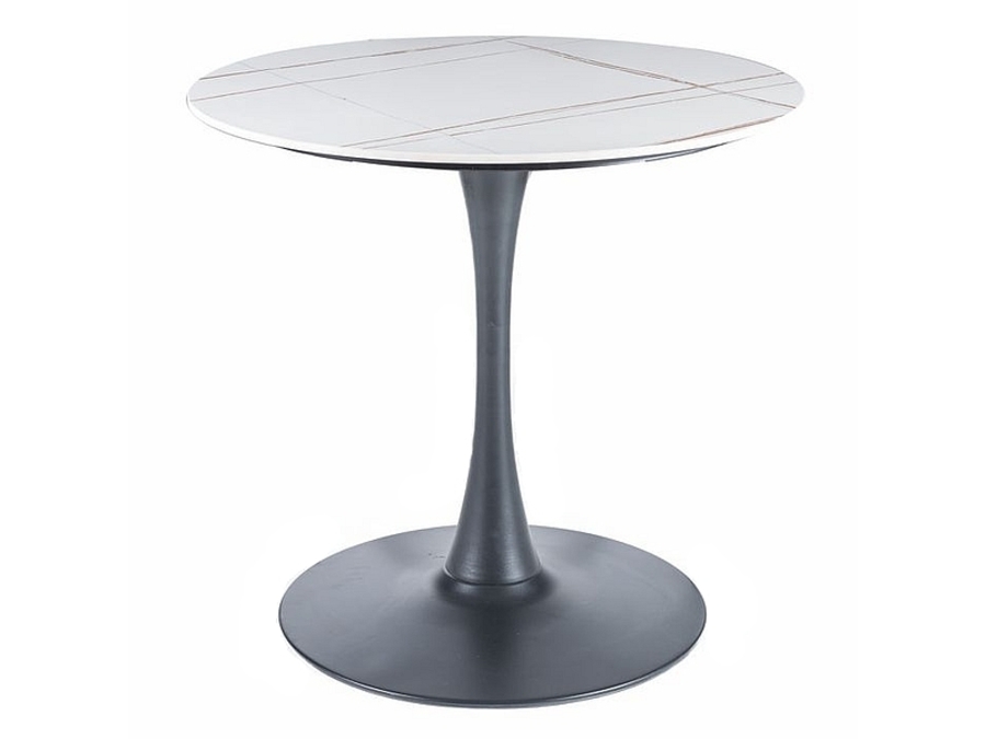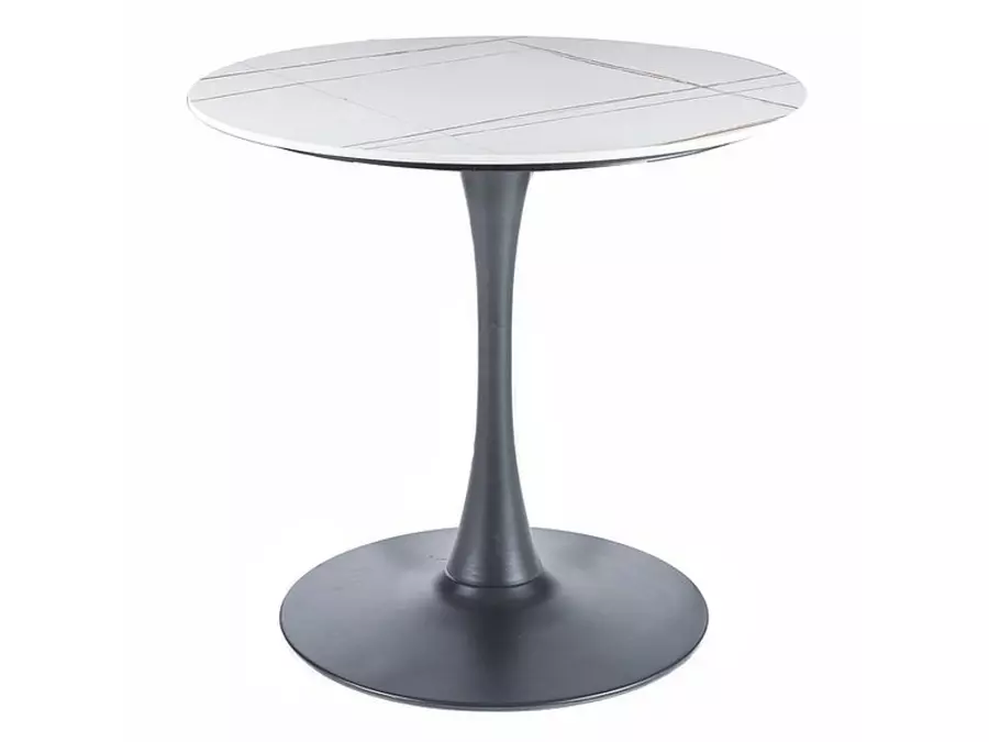 Плотът на масата е изработен от висококачествена керамика, която предлага издръжливост и устойчивост на ежедневна употреба. Керамичната повърхност е лесна за почистване и поддръжка, което я прави изключително практична. Нейната естетика допълва изискания стил, като същевременно предлага функционалност и комфорт. Основата на масата е изработена от здрав метал, боядисан в черен матов цвят. Тази стабилна конструкция осигурява надеждност и устойчивост, като в същото време придава модерен и минималистичен вид. Формата на основата е проектирана така, че да осигурява максимално удобство и стабилност по време на употреба.