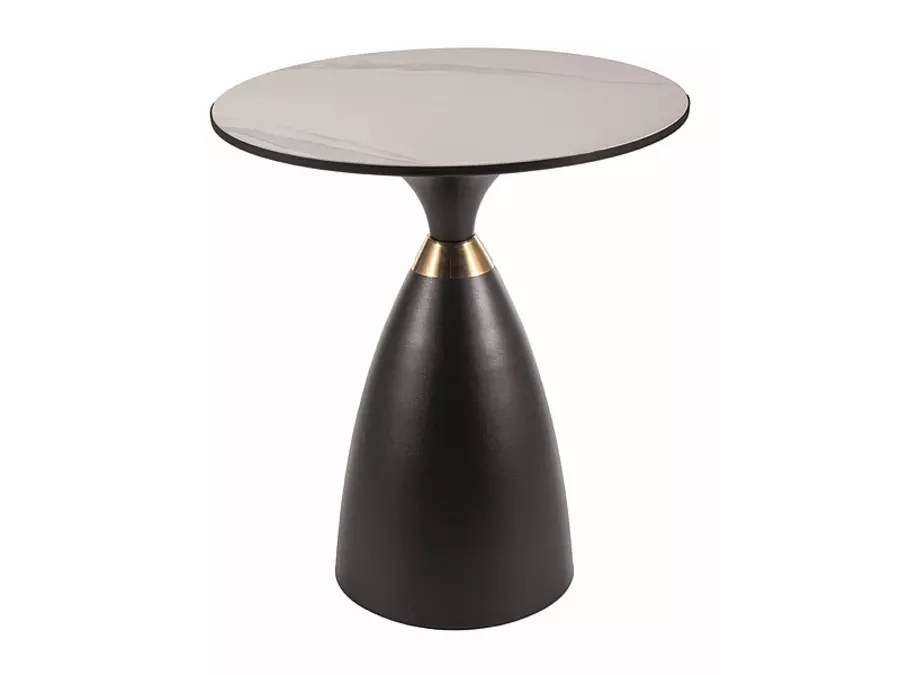 Холна маса ДЖЕМИНИ е изработена с бял керамичен плот с мраморен ефект, основата е метална в цвят черен мат и злато.
