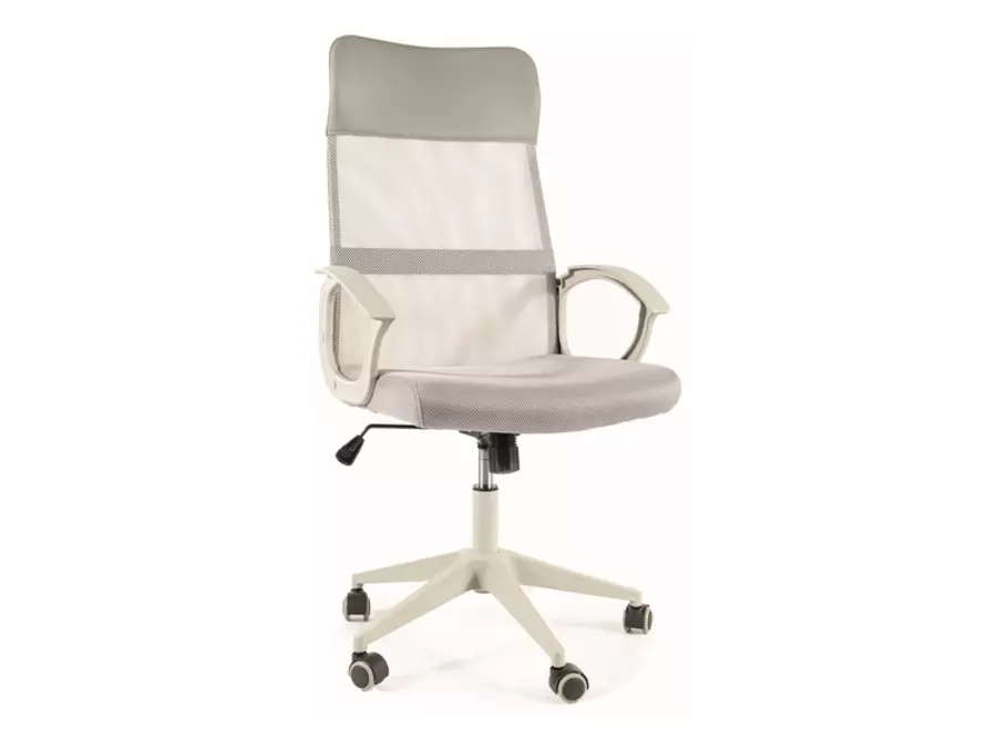 Офис кресло Q-026 е изработено от еко кожа и мрежа в сив цвят. Креслото има механизъм за регулиране на височината на седалката.