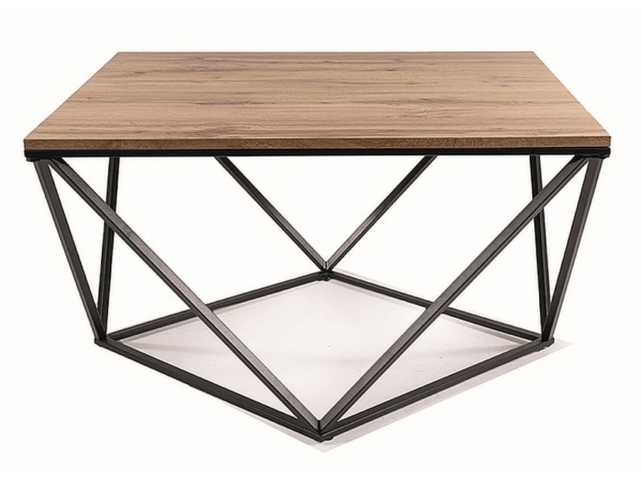 Холна маса СИЛВЪР А. Плотът на масата е изработен от МДФ плоскост в цвят дъб артизан, рамката и основата на масата са изработени от метал в цвят черен мат.