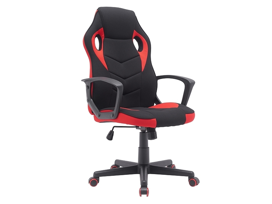 Офис стол ДАКАР е тапициран в цвят черно и червено.