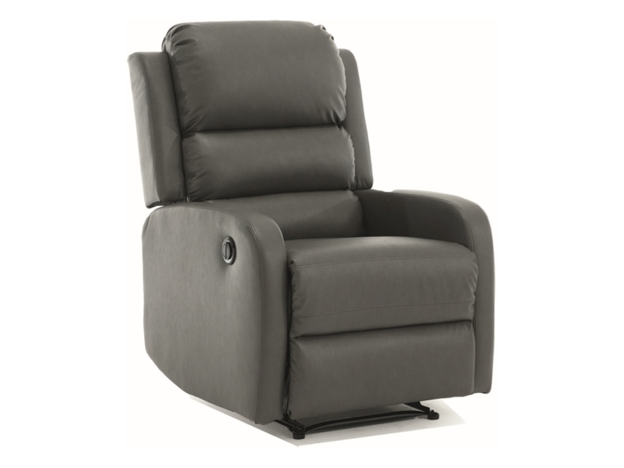 Фотьойлът е тапициран с изкуствена кожа в сив цвят.