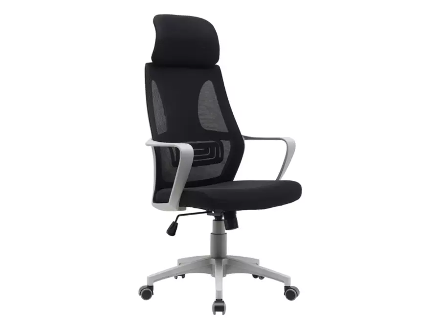 Офис стол Q-095 е тапициран с плат и мрежа в черен цвят.