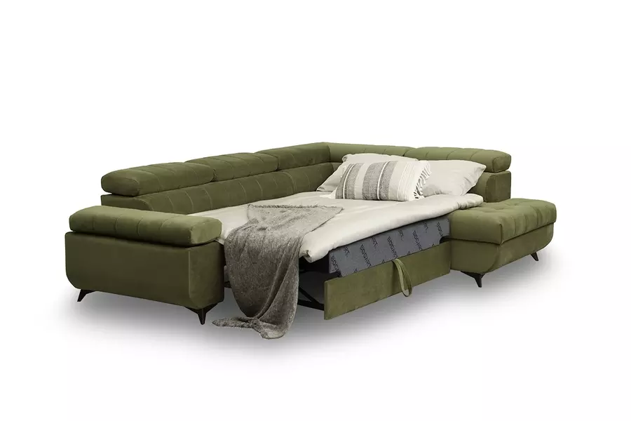 ДРАГОНИС L предлага функция сън с размер 194 x 124 см, подходяща както за гости, така и за ежедневно използване. Подглавниците се регулират на пет степени, като позволяват персонализиране на позицията за оптимален комфорт. Допълнително удобство предоставя подлакътникът с механизъм за регулиране на височината, което улеснява адаптирането на дивана към индивидуалните нужди на всеки потребител.