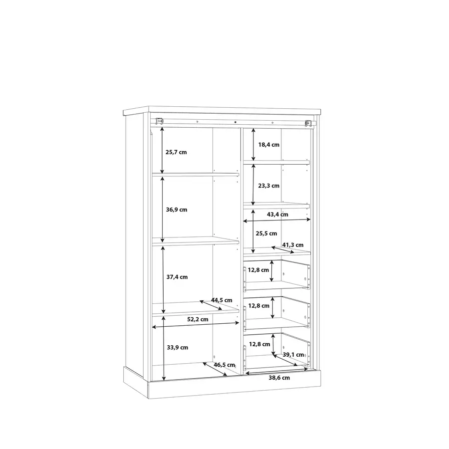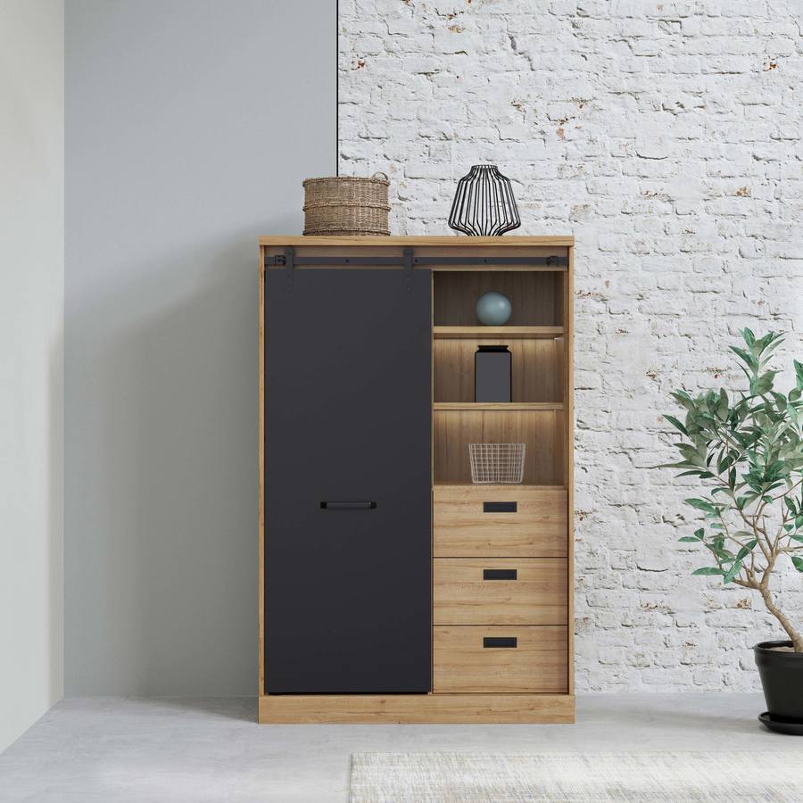 Благодарение на своята изчистена визия и естествени цветове, шкафът Кашимиро може лесно да бъде интегриран в различни интериорни стилове, от класически до съвременни. С рафтовете зад плъзгащата врата и трите чекмеджета, шкафът предлага достатъчно място за съхранение на различни вещи – дрехи, книги, документи или декорации.